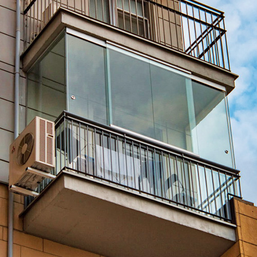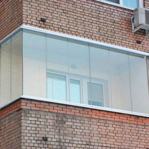 Судя по названию рамы здесь отсутствуют, а их функции выполняет толстое каленое или ламинированное стекло. При этом балкон выглядит как конструкция из стеклянных листов. Элементы сверху и снизу крепятся к несущему каркасу, а по бокам соединяются за счет герметика. Для открывания секций предусмотрены особые механизмы и уплотнители.