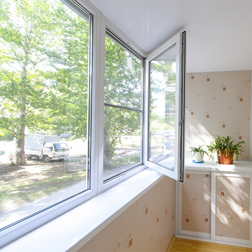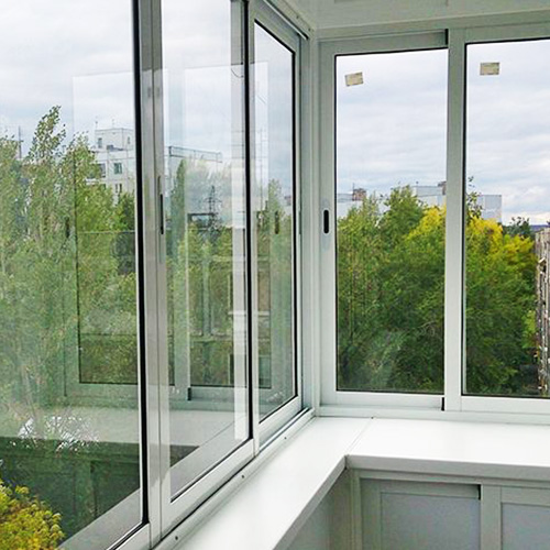 - Экономия пространства. Ширина углового балкона как правило небольшая, поэтому лучше отдать предпочтение системе раздвижных окон. В отличие от распашных они занимают минимум свободного места в открытом состоянии.