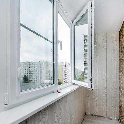 Створки двигаются по направляющим по принципу купе и всегда остаются в плоскости окна. За счет этого: